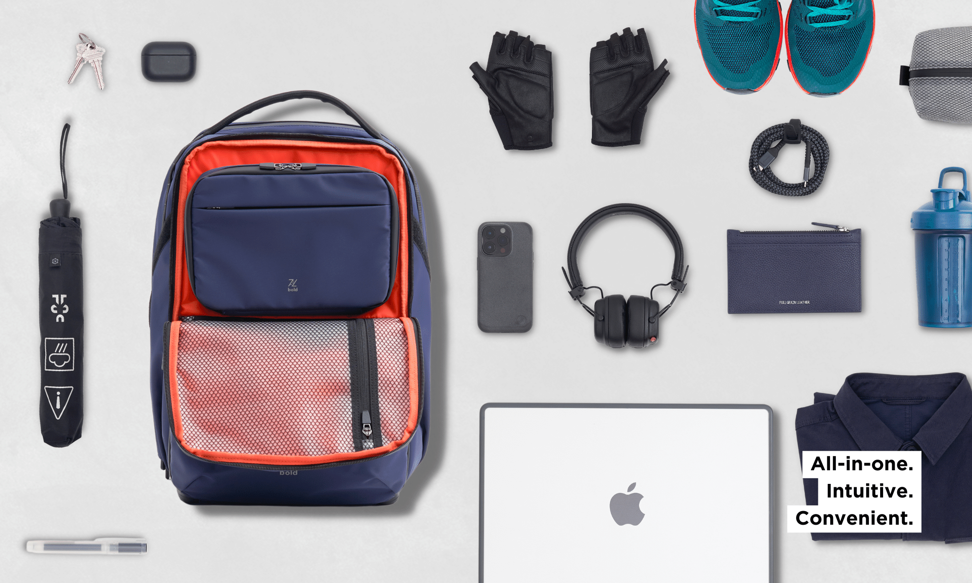 Everything fits! It can fit as much as I need for an entire day’s work (i.e. 3 sets of activewear, toiletries, a pair of trainers & flip flops, MacBook (up to 15”), chargers for all devices, a jacket, pouches for essentials/organisation, an umbrella, a water bottle etc."