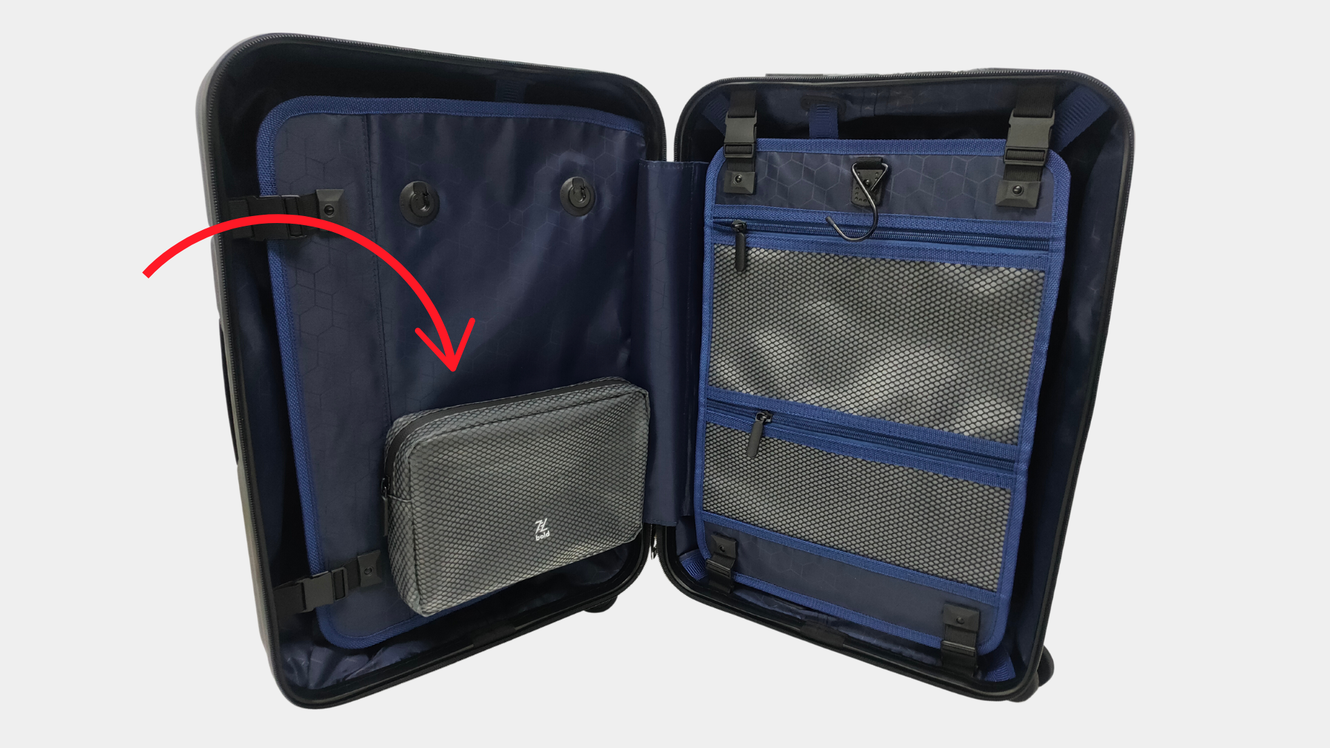 Never forget your toiletry bag again with our Volo's dedicated space