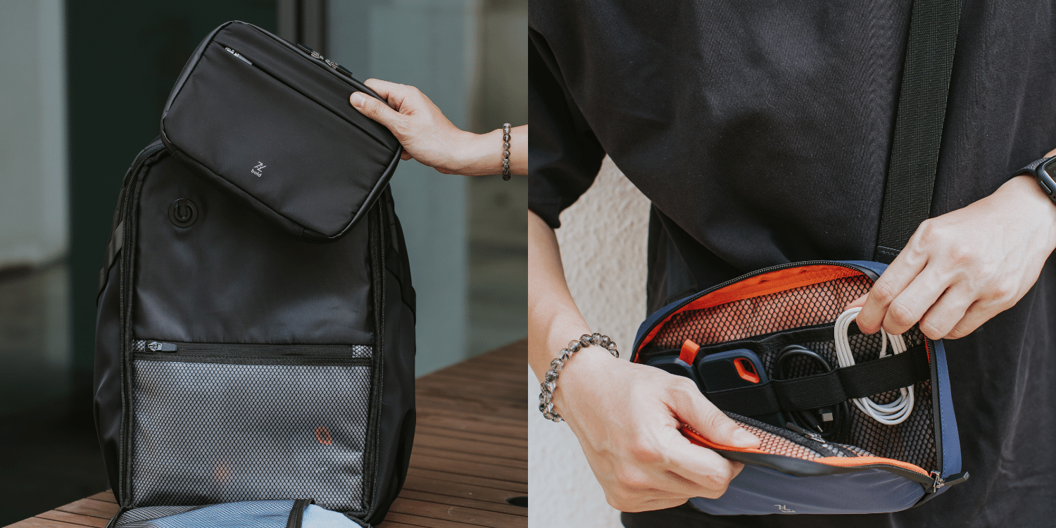 Detachable organizer that transforms into an Essential Sling, perfect for both organization and on-the-go convenience.